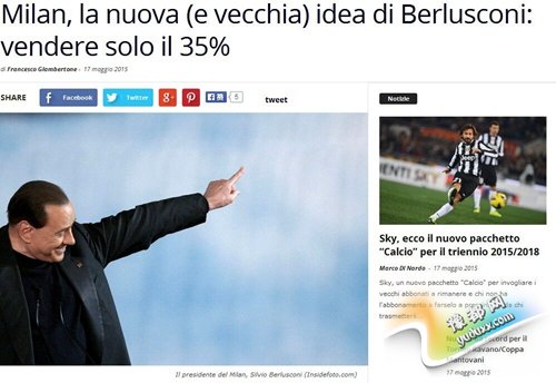 《米兰体育报》:贝卢斯科尼只愿意出售米兰35%的股份