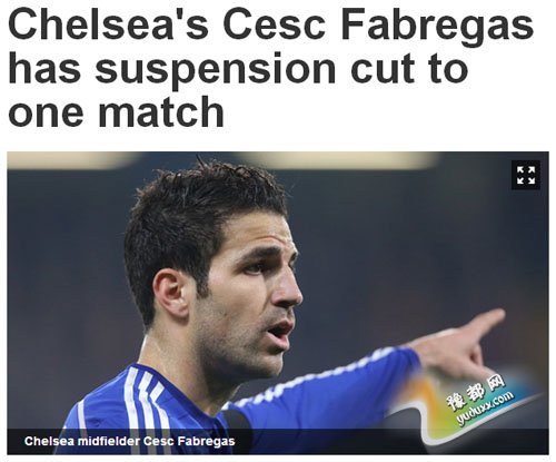 英足总官方宣布小法仅禁赛一场 北京时间5月21日凌晨,英足总官方宣布法布雷加斯将仅禁赛一场,而不是此前所报道的三场。因此,小法只会缺席本赛季最后一轮切尔西与桑德兰的比赛,可出战下赛季的揭幕战。