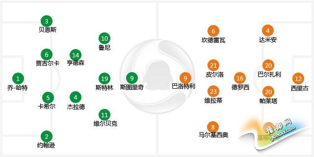 中场:11-维尔贝克(21-巴克利61')、10-鲁尼、19-斯特林