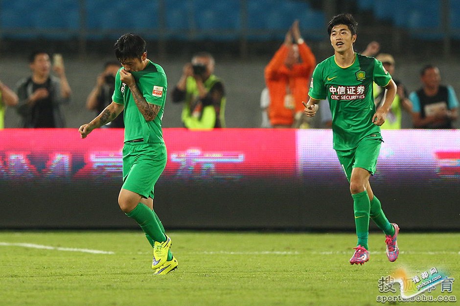 国安1-0舜天 张稀哲世界波破门亲吻队徽北京时间9月20日,中超联赛第26轮再赛一场,北京国安主场迎战江苏舜天。凭借张稀哲的一脚世界波,国安主场力克对手,不但全取三分,也在联赛最后阶段依然保留了争夺冠军的希望。